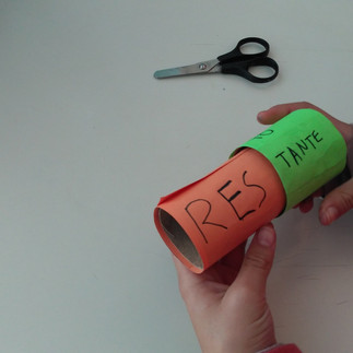 Pensando no desenvolvimento da leitura, as crianças da turma C realizaram um trabalho bem interessante enquanto construíam um jogo educativo com ênfase na língua portuguesa. Rolinhos de papel higiênico que seriam descartados foram reaproveitados. Em duplas, as crianças encaparam cada rolinho de papel separado em duas partes, em uma extremidade escreveram uma sílaba e na outra, escreveram outras sílabas. Unindo-se duas extremidades quaisquer, formavam palavras. Algumas duplas formaram palavras com apenas duas silabas e outras, com várias sílabas. As crianças liam as palavras formadas e depois escreviam cada uma delas.